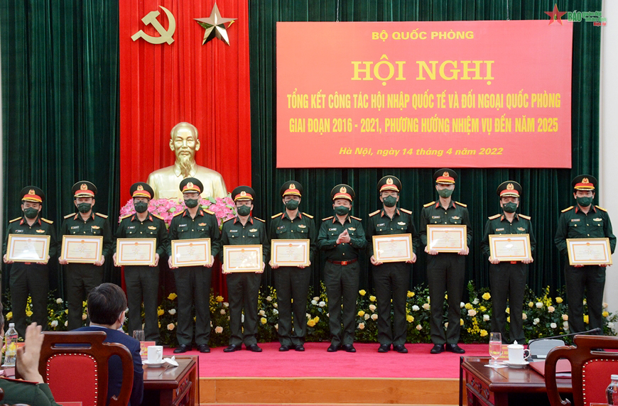 Dịp này, Bộ trưởng Bộ Quốc phòng đã tặng Bằng khen cho 77 tập thể và 76 cá nhân đã có thành tích xuất sắc trong công tác HNQT và ĐNQP giai đoạn 2016-2021. Quân chủng Hải quân có 3 tập thể (Phòng Đối ngoại, Bộ Tham mưu; Vùng 4; Công ty TNHH Tân cảng-Petro Cam Ranh, Tổng công ty Tân cảng Sài Gòn) và 3 cá nhân.
