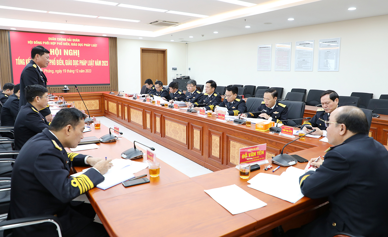 Sáng 19/12, tại Hải Phòng, Chuẩn Đô đốc Đỗ Văn Yên, Chủ tịch Hội đồng phối hợp phổ biến giáo dục pháp luật (PBGDPL) Quân chủng Hải quân chủ trì Hội nghị tổng kết công tác PBGDPL năm 2023.