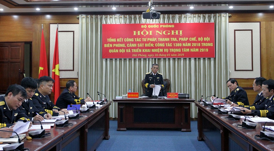 Ngày 16-1, Bộ Quốc phòng tổ chức Hội nghị trực tuyến tổng kết công tác tư pháp, thanh tra, pháp chế và công tác 1389 trong quân đội năm 2018, triển khai nhiệm vụ năm 2019. Thượng tướng Lê Chiêm, Uỷ viên Trung ương Đảng, Ủy viên Quân ủy Trung ương, Thứ trưởng Bộ Quốc phòng, Trưởng Ban chỉ đạo 1389 Bộ Quốc phòng chủ trì hội nghị. Tại điểm cầu Bộ Tư lệnh Hải quân, Chuẩn Đô đốc Lương Việt Hùng, Phó Tư lệnh Hải quân chủ trì.