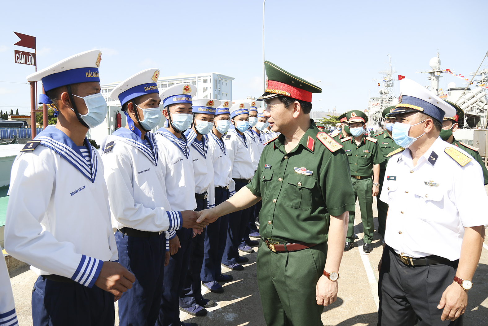Cán bộ, chiến sĩ Vùng 2 đón đồng chí Tổng Tham mưu trưởng và đoàn công tác tại cảng Lữ đoàn 171