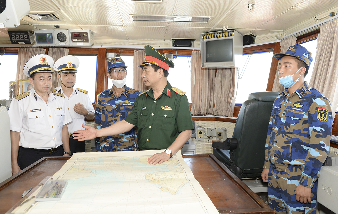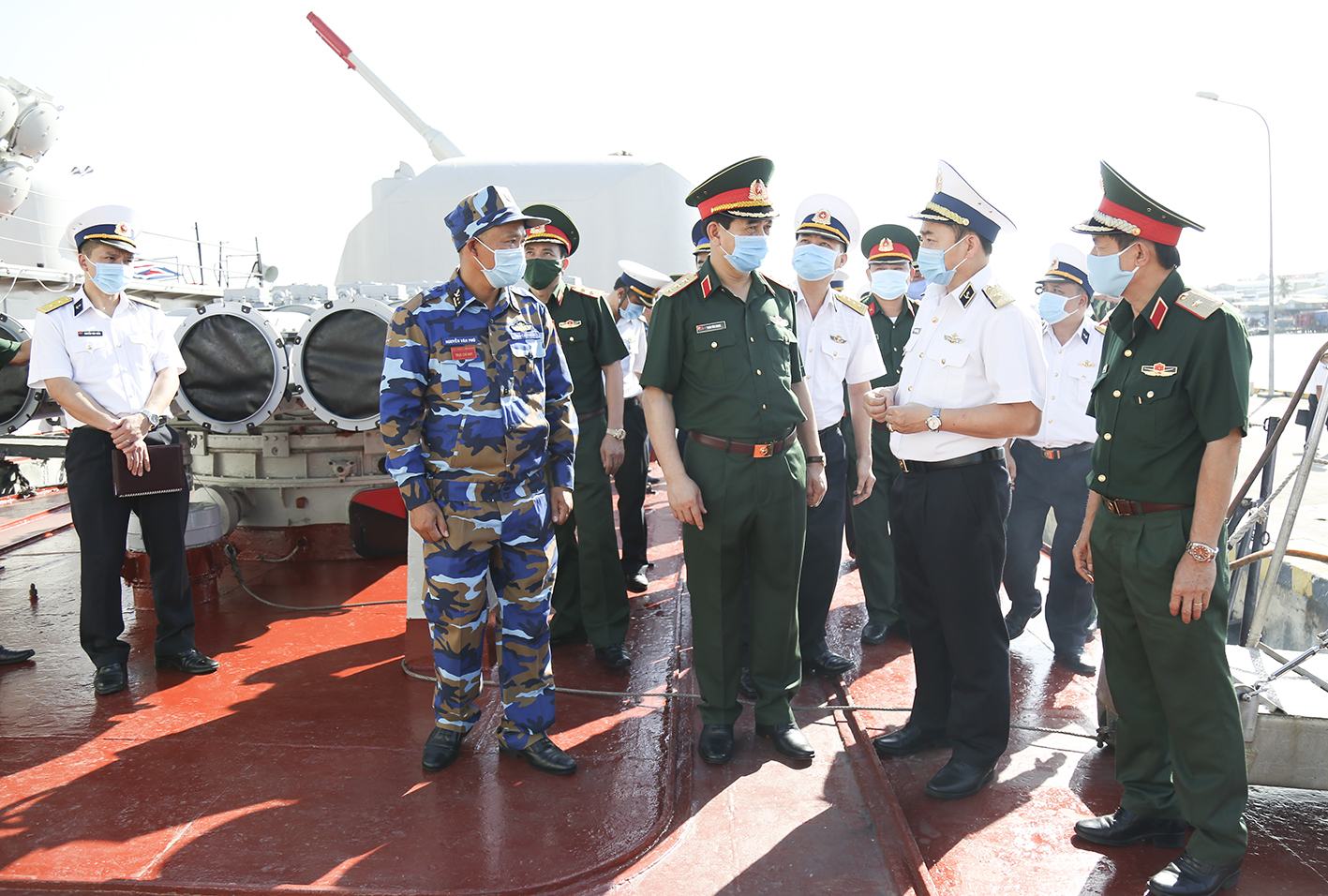 Cùng đi có Chuẩn Đô đốc Trần Thanh Nghiêm, Phó Tư lệnh, Tham mưu trưởng Hải quân và thủ trưởng các cơ quan Bộ Quốc phòng, Văn phòng Bộ Tổng Tham mưu, Bộ Tư lệnh Quân khu 7, Bộ Tư lệnh Cảnh sát biển Việt Nam, Bộ Tư lệnh Bộ đội Biên phòng.