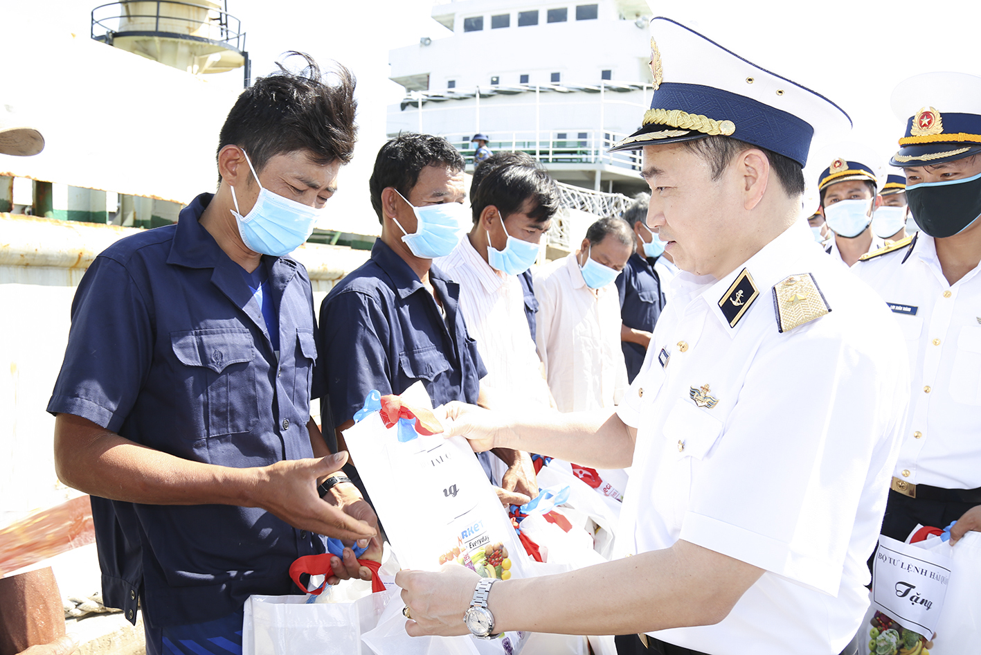 Chuẩn Đô đốc Trần Thanh Nghiêm tặng quà của Quân chủng Hải quân cho các ngư dân