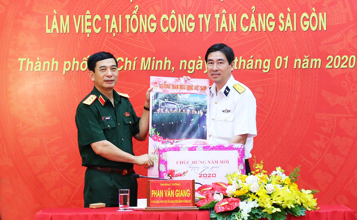 Thượng tướng Phan Văn Giang tặng quà, chúc mừng năm mới tới cán bộ, nhân viên, người lao động Tổng công ty Tân cảng Sài Gòn