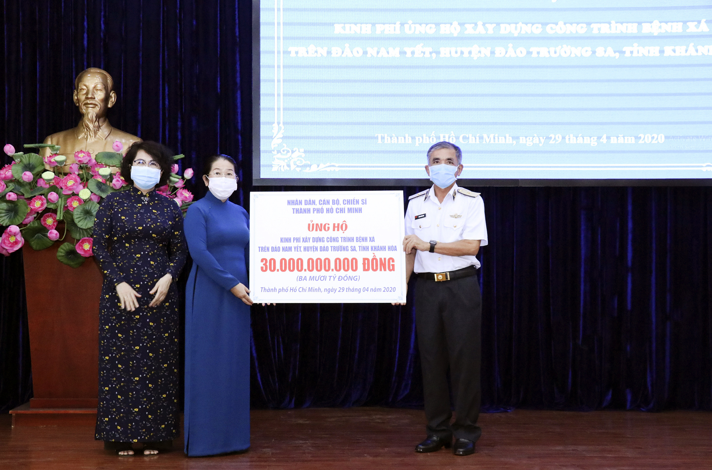Tại buổi lễ, đồng chí Võ Thị Dung, Phó Bí thư Thành ủy TP. Hồ Chí Minh và đồng chí Tô Thị Bích Châu, Chủ tịch Ủy ban Mặt trận Tổ quốc Việt Nam TP. Hồ Chí Minh đã trao bảng tượng trưng số tiền 30 tỷ đồng tới Chuẩn Đô đốc Lương Việt Hùng, Phó Tư lệnh Quân chủng Hải quân.