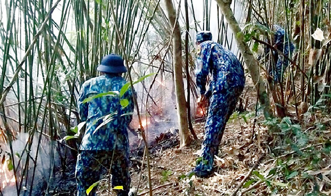 Do thời tiết nắng hanh, thảm thực vật khô, dày nên lửa nhanh chóng lan rộng và bùng phát rất mạnh. Cán bộ, chiến sĩ Trạm ra đa 485 cùng với các lực lượng chữa cháy của địa phương đã nỗ lực, khắc phục khó khăn, tạo đường băng cản lửa, khoanh vùng đám cháy.