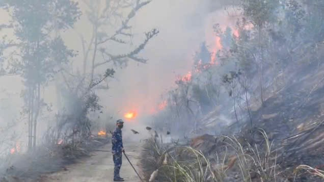 Do thời tiết hanh khô, lớp thực bì dày rất dễ bốc cháy, cùng với địa hình đồi dốc cao, hiểm trở, lực lượng chữa cháy rất khó tiếp cận hiện trường.
