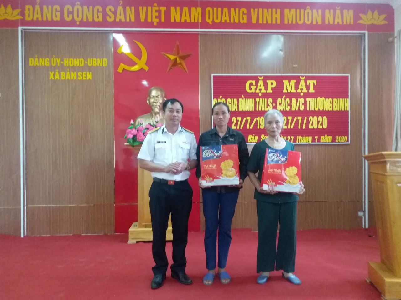 Chỉ huy Trạm tặng quà gia đình chính sách xã Bản Sen