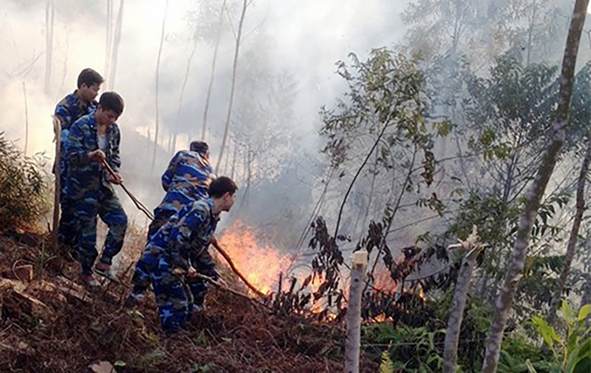 Do thời tiết mùa hè nắng nóng, thảm thực vật dày nên lửa nhanh chóng lan rộng và bùng phát rất mạnh. Cán bộ, chiến sĩ Trạm ra đa 500 cùng với các lực lượng chữa cháy đã phát quang tạo đường băng cản lửa, khoanh vùng đám cháy.