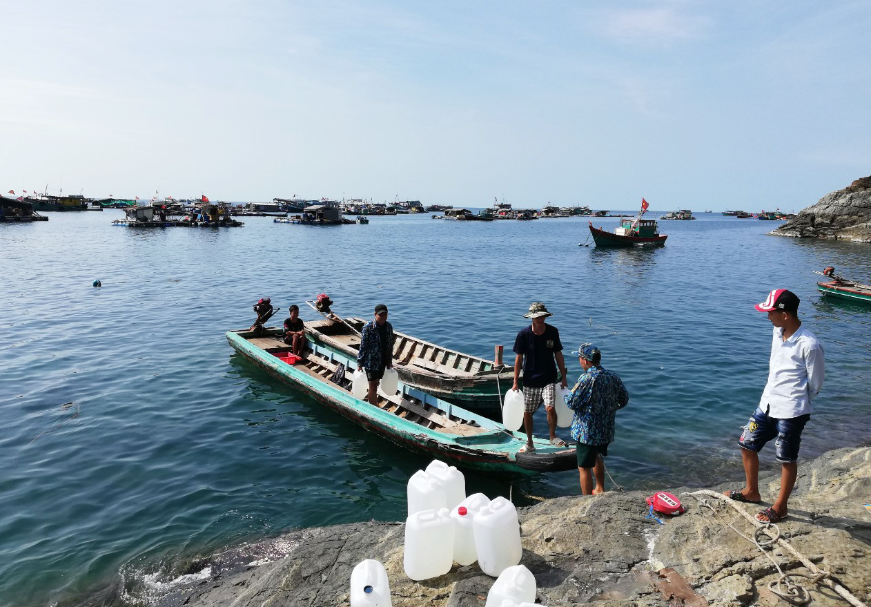 Người dân đảo Hòn Chuối nhận nước ngọt từ Trạm ra đa 615