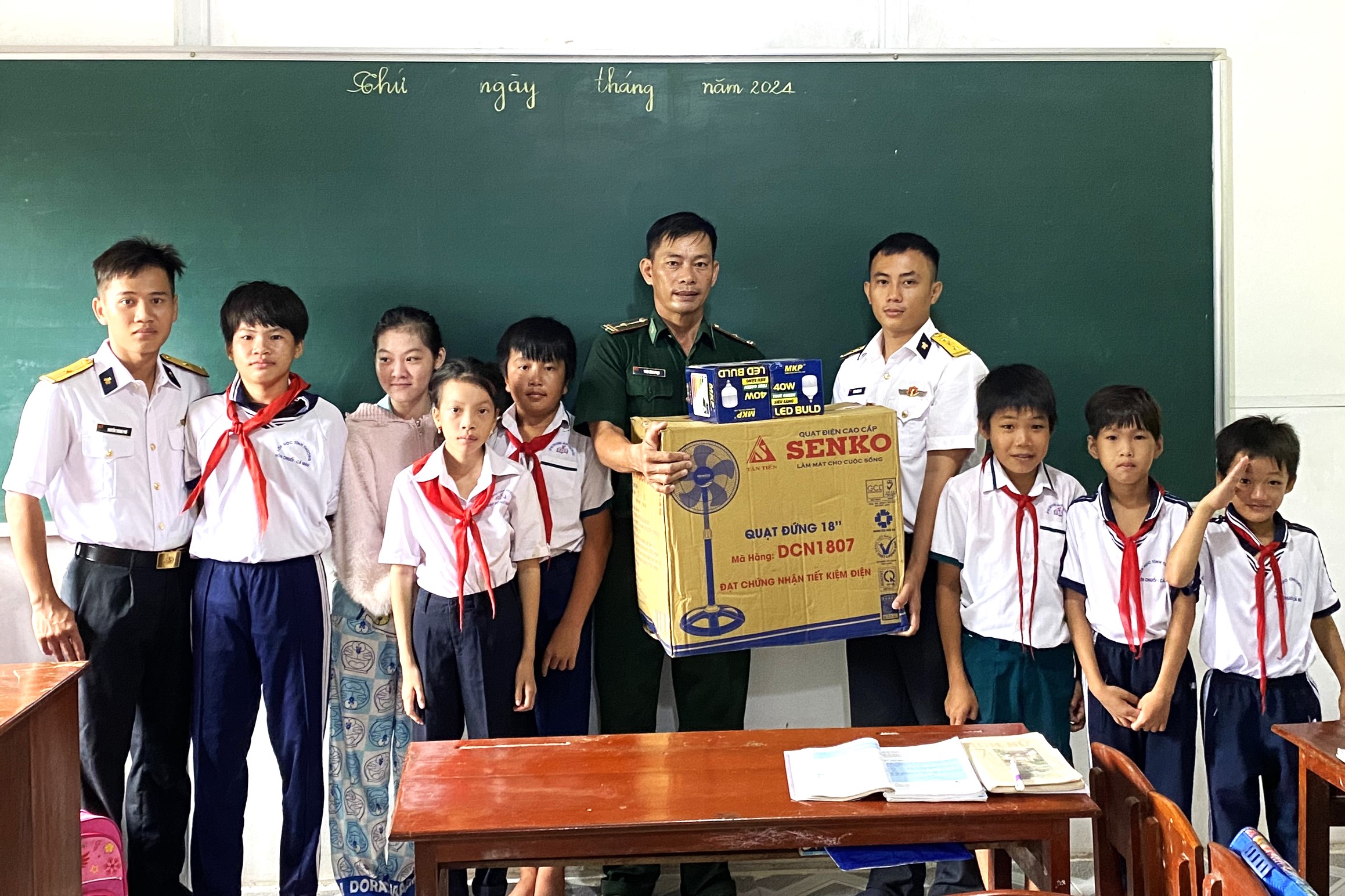 Chỉ huy Trạm ra đa 615 đã trao lớp học tình thương các thiết bị điện dân dụng gồm: Quạt gió và bóng đèn led đồng thời ân cần thăm hỏi cuộc sống, sinh hoạt và thành tích học tập của các em học sinh; mong muốn các em tiếp tục nỗ lực, đạt được nhiều kết quả cao trong học tập.
