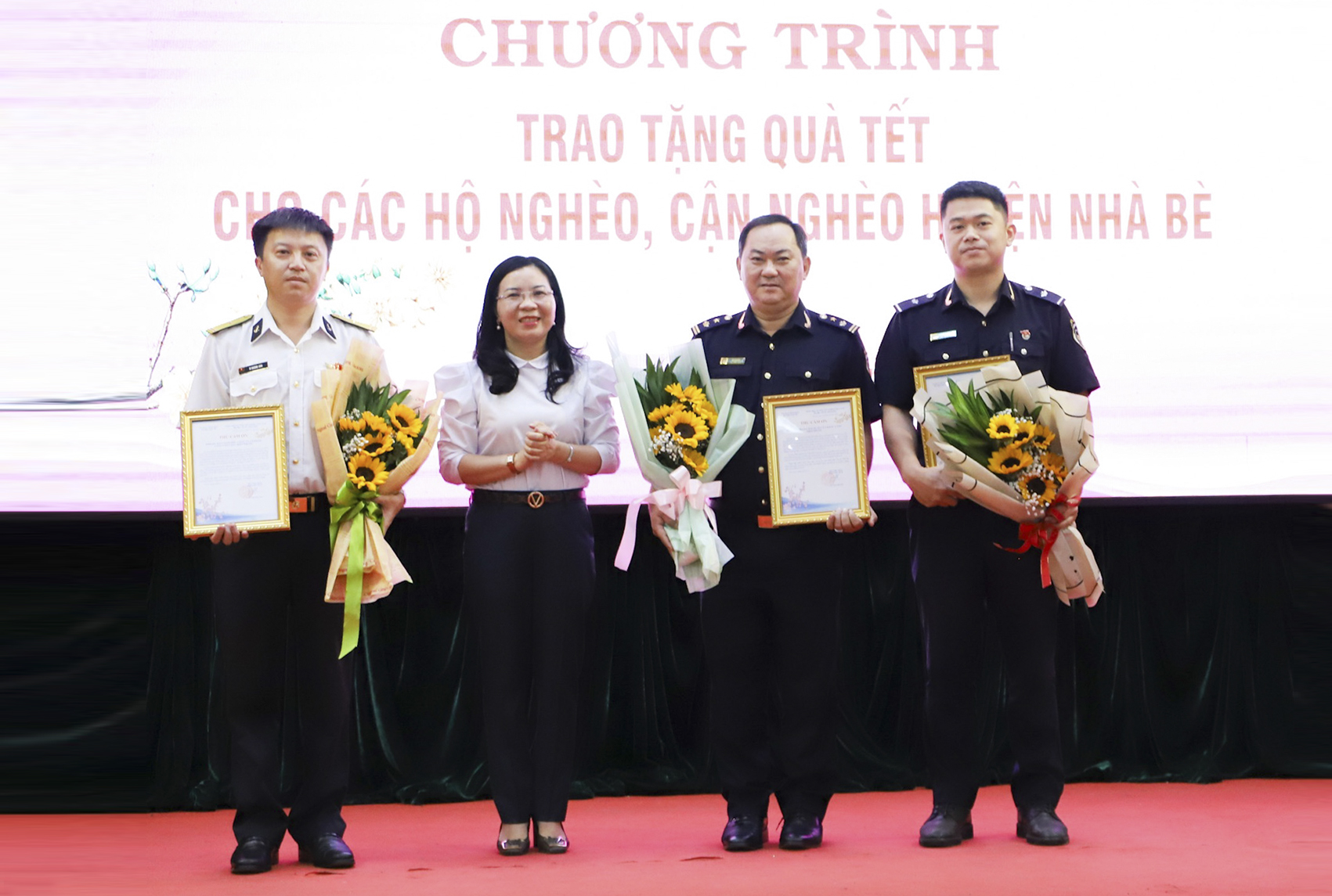 Lãnh đạo huyện Nhà Bè trao thư cảm ơn và tặng hoa cho các đơn vị tổ chức chương trình