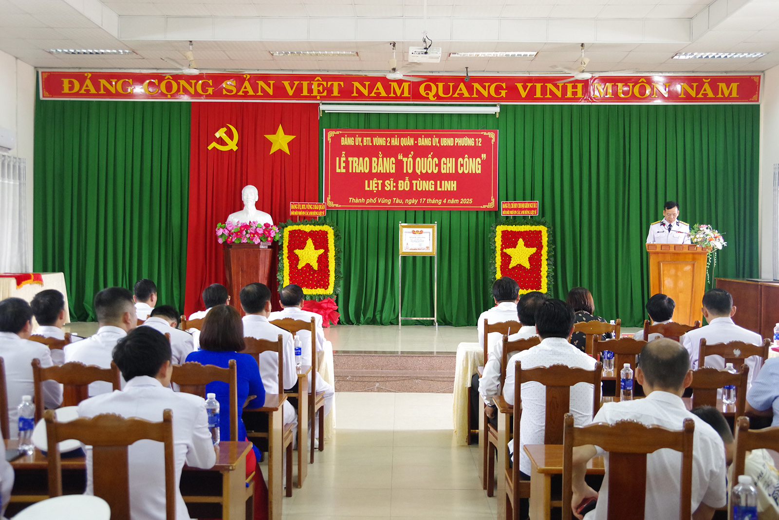 Sáng 17/4, tại thành phố Vũng Tàu, tỉnh Bà Rịa-Vũng Tàu, Đảng ủy, Bộ Tư lệnh Vùng 2 Hải quân phối hợp với cấp ủy, chính quyền địa phương và gia đình tổ chức Lễ công bố quyết định và trao bằng “Tổ quốc ghi công” cho gia đình liệt sĩ Đỗ Tùng Linh.