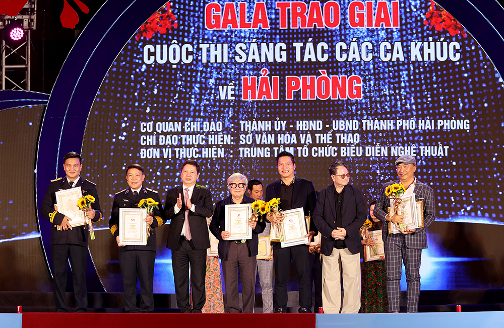 Tối 9/12, Sở Văn hóa và Thể thao TP. Hải Phòng đã tổ chức trao giải cho các tác phẩm đoạt giải trong Cuộc thi Sáng tác ca khúc về TP. Hải Phòng. Dự buổi lễ có các đồng chí: Lê Khắc Nam, Phó Chủ tịch UBND TP; Đào Khánh Hà, Ủy viên Ban Thường vụ, Trưởng ban Tuyên giáo Thành ủy; Trần Thị Hoàng Mai, Giám đốc Sở Văn hóa và Thể thao.