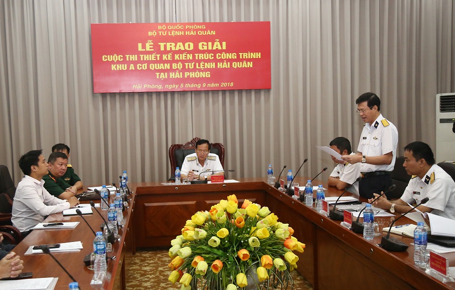 Sáng 5-9, tại Hải Phòng, Bộ Tư lệnh Hải quân tổ chức lễ trao giải cuộc thi thiết kế kiến trúc công trình Khu A, cơ quan Bộ Tư lệnh Hải quân. Chuẩn Đô đốc Ngô Sỹ Quyết, Phó Tư lệnh Hải quân, Trưởng ban tổ chức cuộc thi chủ trì buổi lễ.