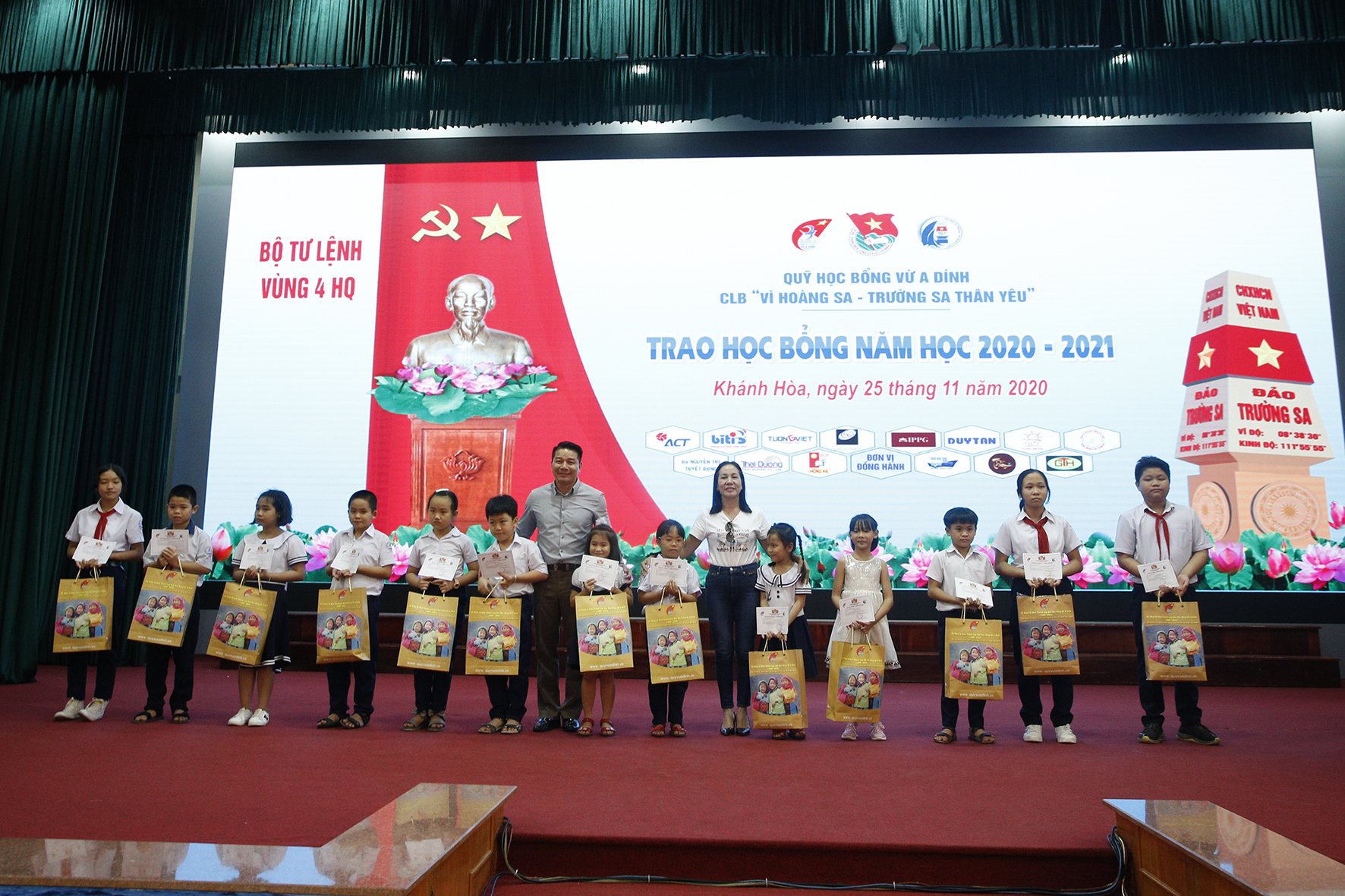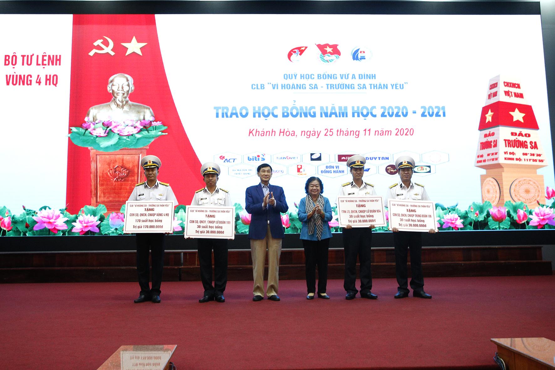 Dịp này, Quỹ học bổng Vừ A Dính và Câu lạc bộ Vì Hoàng Sa-Trường Sa thân yêu trao tặng 260 suất học bổng; mỗi suất gồm 1 triệu đồng, 1 bình đựng nước uống, 1 quần, 1 đôi dép, vở và bút viết. Các cháu nhận học bổng đều là học sinh giỏi có hoàn cảnh khó khăn, con của quân nhân, CNVQP thuộc Vùng 4, Lữ đoàn 954, Lữ đoàn 189 và Trung đoàn 196 Hải quân.