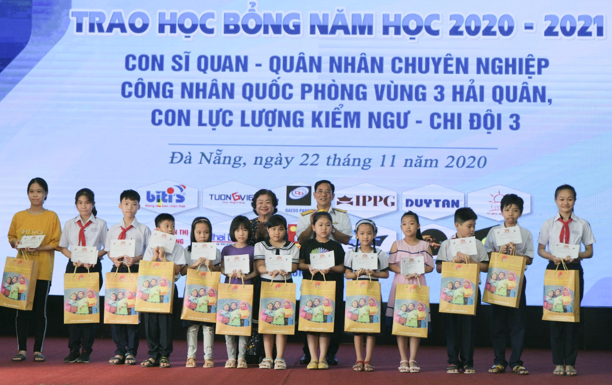Chiều 22-11, tại TP. Đà Nẵng, Bộ Tư lệnh Vùng 3 Hải quân phối hợp với Quỹ học bổng Vừ A Dính và Câu lạc bộ “Vì Hoàng Sa, Trường Sa thân yêu” tổ chức trao 200 suất học bổng năm học 2020-2021 cho học sinh là con của sĩ quan, QNCN Vùng 3 Hải quân và Chi đội Kiểm ngư số 3.