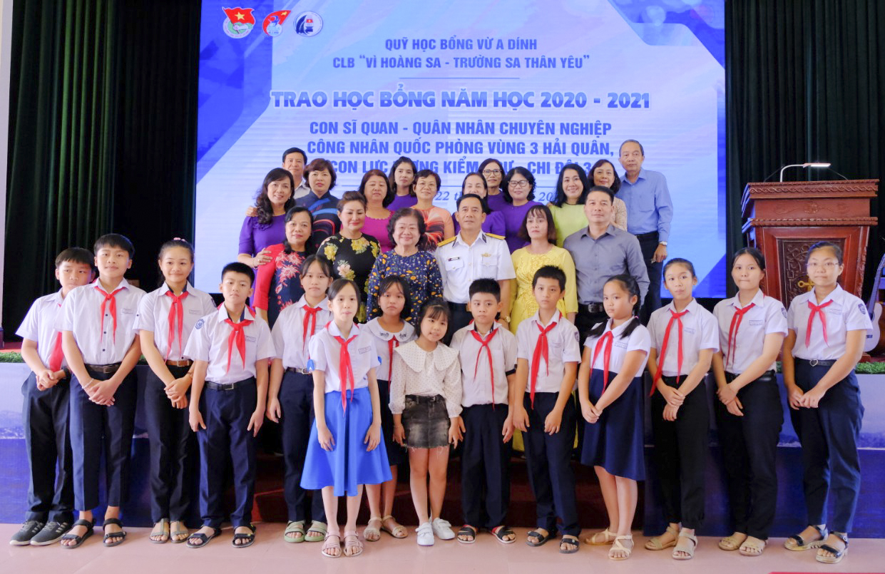 Quỹ học bổng Vừ A Dính và Câu lạc bộ “Vì Hoàng Sa, Trường Sa thân yêu” đã trao 200 suất học bổng cho các cháu học sinh là con của sĩ quan, QNCN Vùng 3 Hải quân. Mỗi suất học bổng gồm 1 triệu đồng, 1 bình đựng nước uống, 1 quần jean, 1 đôi dép bitis. Đây là những cháu học sinh vượt khó, chăm ngoan, học giỏi.