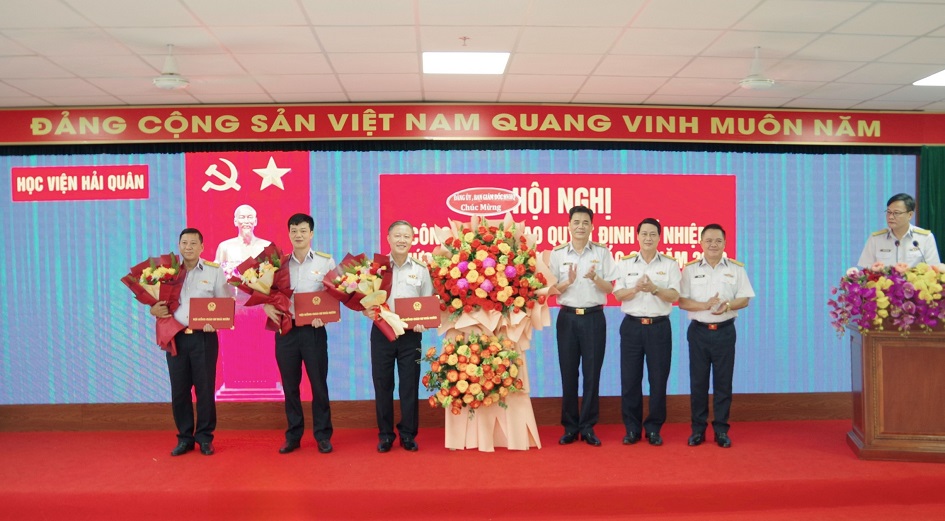 Ban Giám đốc Học viện Hải quân tặng hoa chúc mừng các đồng chí được bổ nhiệm chức danh GS, PGS