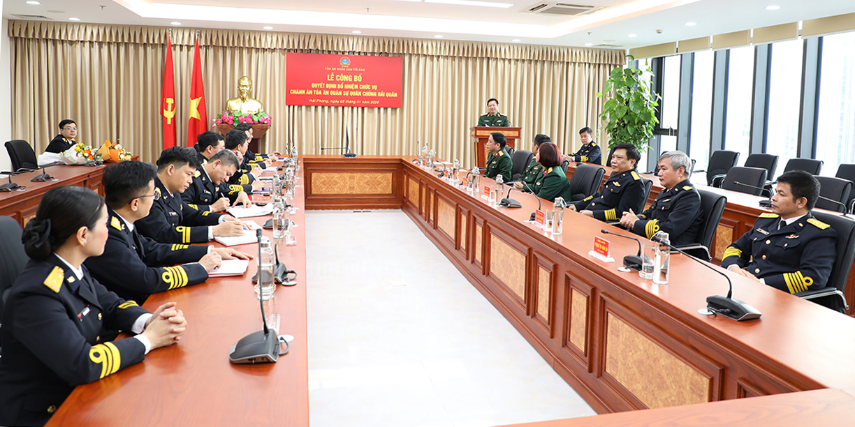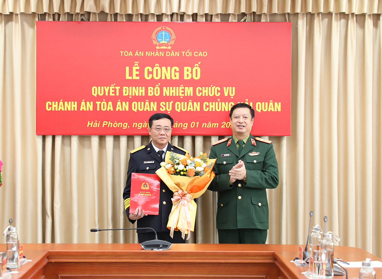 Chiều 5/1, tại TP. Hải Phòng, Tòa án Nhân dân (TAND) Tối cao tổ chức Lễ trao quyết định bổ nhiệm Chánh án Tòa án Quân sự Quân chủng Hải quân. Trung tướng Dương Văn Thăng, Phó Chánh án TAND Tối cao, Chánh án Tòa án Quân sự Trung ương (TAQSTƯ) chủ trì. Tham dự có Chuẩn Đô đốc Nguyễn Đình Hùng, Phó Tư lệnh Hải quân; Đại tá Hồ Thanh Hoàn, Phó Chủ nhiệm Chính trị Hải quân.
