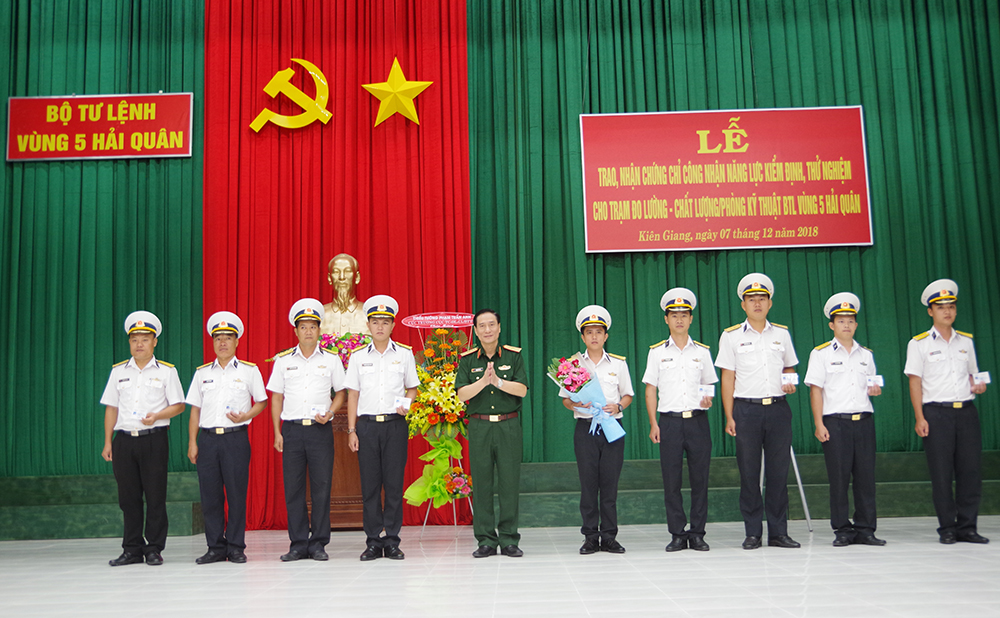 Ngày 7-12, tại huyện đảo Phú Quốc, tỉnh Kiên Giang, Cục Tiêu chuẩn Đo lường-Chất lượng, Bộ Tổng tham mưu đã trao quyết định công nhận năng lực kiểm định phương tiện đo lường, thử nghiệm vũ khí trang bị kỹ thuật (VKTB) cho Trạm Đo lường-Chất lượng thuộc Phòng Kỹ thuật, Vùng 5 Hải quân. Thiếu tướng Phạm Tuấn Anh, Cục trưởng Cục Tiêu chuẩn-Đo lường-Chất lượng, Bộ Tổng Tham mưu dự và trao quyết định công nhận. Tham dự lễ có Chuẩn Đô đốc Hoàng Hồng Hà, Phó Tư lệnh Hải quân, thủ trưởng Cục Kỹ thuật, thủ trưởng Bộ Tư lệnh Vùng 5 và đại diện lãnh đạo, chỉ huy các cơ quan, đơn vị trong Vùng.