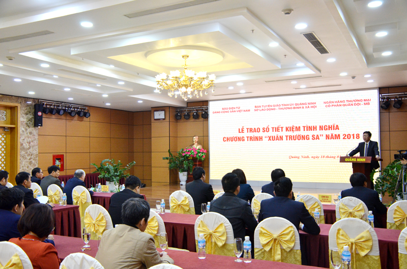 Trong khuôn khổ Chương trình “Xuân Trường Sa” năm 2018, ngày 18-1, tại TP. Hạ Long, tỉnh Quảng Ninh, Báo Điện tử Đảng Cộng sản Việt Nam phối hợp với Ban Tuyên giáo Tỉnh ủy Quảng Ninh, Sở LĐ,TB&XH tỉnh, Ngân hàng Thương mại CP Quân đội tổ chức lễ trao tặng sổ tiết kiệm tình nghĩa cho các gia đình chính sách thuộc Quân chủng Hải quân tại Quảng Ninh.