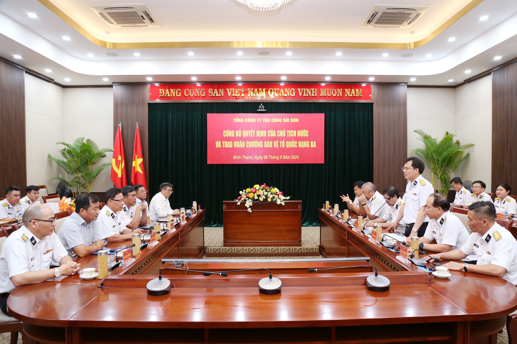 Chiều 6/8, tại TP. Hồ Chí Minh, Thường vụ Đảng ủy, Ban lãnh đạo Tổng công ty Tân cảng Sài Gòn tổ chức trao tặng Huân chương Bảo vệ Tổ quốc hạng Ba cho các đồng chí nguyên là lãnh đạo Tổng công ty.