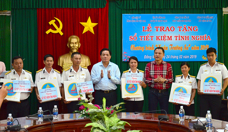 Ngày 22 và 24-2, tại Hội trường Quận ủy quận 9, TP. Hồ Chí Minh và Hội trường Huyện ủy Nhơn Trạch, tỉnh Đồng Nai, Báo điện tử Đảng Cộng sản Việt Nam phối hợp với Lữ đoàn 125 Hải quân, Công ty Cổ phần Đầu tư xây dựng dầu khí IDICO; Công ty Cổ phần Kiểm định xây dựng An Hòa và Công ty Cổ phần tư vấn Phát triển BĐS Đại Phát tổ chức trao tặng 30 sổ tiết kiệm tình nghĩa cho các gia đình chính sách và quân nhân có hoàn cảnh đặc biệt khó khăn đang sinh sống tại TP. Hồ Chí Minh và huyện Nhơn Trạch, tỉnh Đồng Nai.