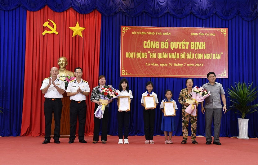 Tại chương trình, 3 em là con ngư dân có hoàn cảnh gia đình đặc biệt khó khăn thuộc huyện Năm Căn và Trần Văn Thời được Lữ đoàn 175, Trung đoàn 551 (Vùng 5) và Nhà máy X55, Cục Kỹ thuật Hải quân nhận đỡ đầu. Các em được hỗ trợ kinh phí thường xuyên 500.000 đồng/người/tháng cùng sách vở, đồ dùng học tập, nhu yếu phẩm và y tế đến khi 18 tuổi.