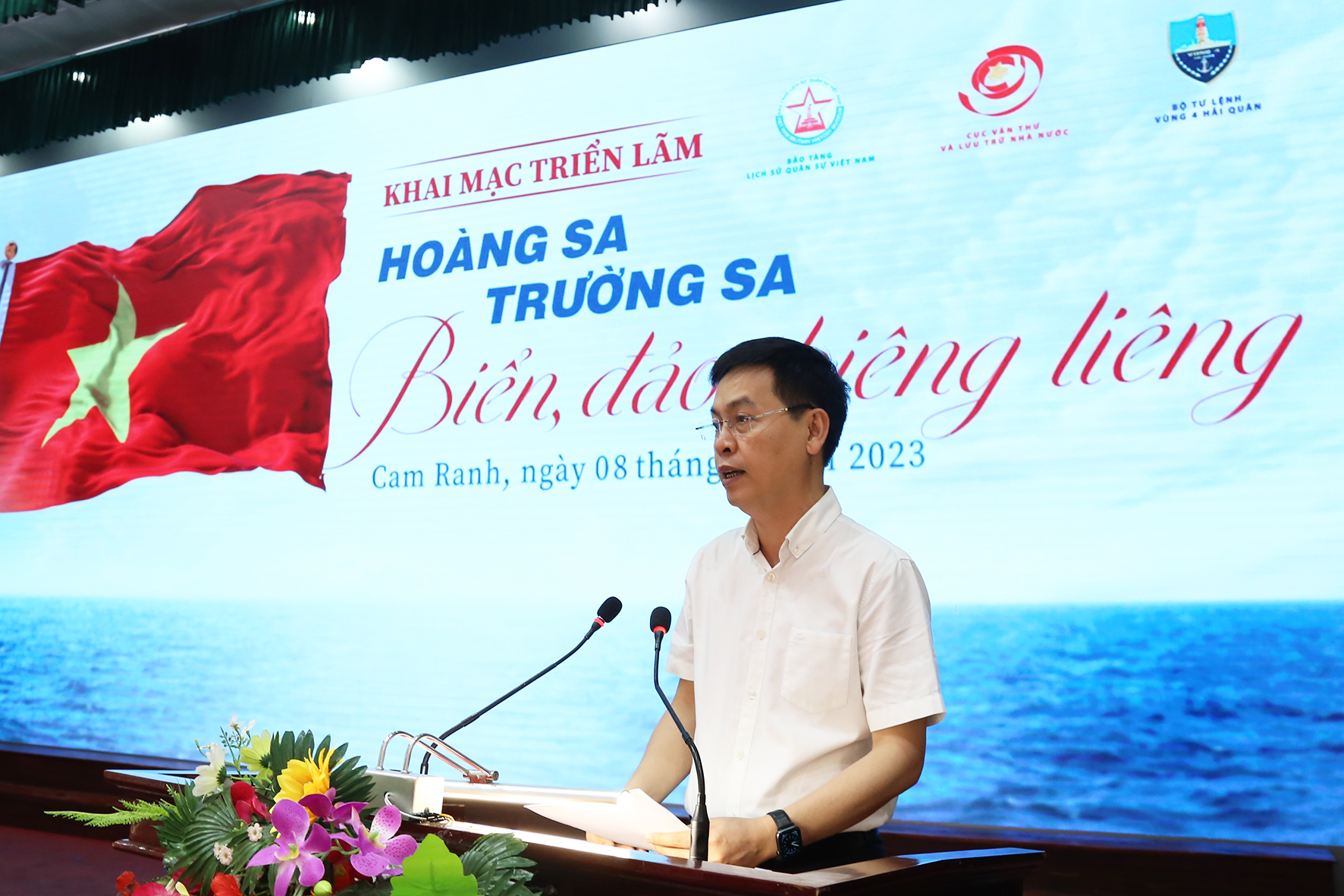 Phát biểu khai mạc, đồng chí Đặng Thanh Tùng, Cục trưởng Cục Văn thư và Lưu trữ nhà nước nhấn mạnh: Triển lãm tại Vùng 4 Hải quân mở đầu cho chuỗi các hoạt động công bố, giới thiệu tài liệu lưu trữ nhằm đẩy mạnh công tác tuyên truyền về chủ quyền biển, đảo Việt Nam do Cục Văn thư và Lưu trữ nhà nước (Bộ Nội vụ) cùng Bảo tàng Lịch sử quân sự Việt Nam và các đơn vị trong toàn quân phối hợp thực hiện.