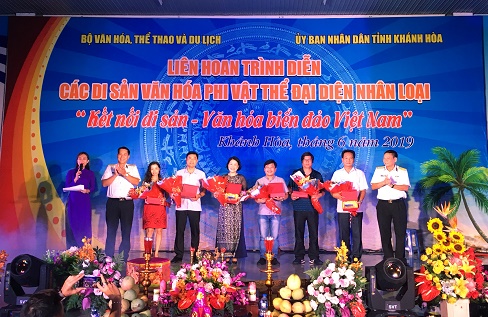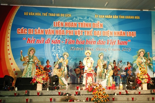 Tối 15-6, tại TP. Cam Ranh, tỉnh Khánh Hòa, Ban tổ chức Liên hoan trình diễn các di sản văn hóa phi vật thể đại diện nhân loại phối hợp với Vùng 4 Hải quân tổ chức trình diễn các loại hình nghệ thuật của liên hoan.