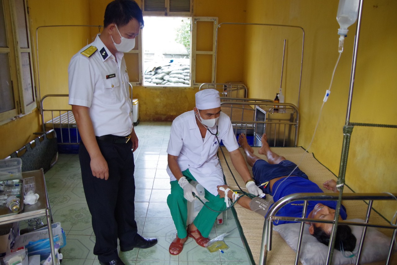 Kíp y, bác sĩ của đảo đã kịp thời thăm khám, kết nối cầu truyền hình với Viện Quân y 7 để hội chẩn và điều trị. Quân y đảo đã cho bệnh nhân thở ô xy, truyền thuốc chống phù não, kháng sinh liều cao, hạ sốt, bổ sung dịch, điện giải, nuôi dưỡng qua Sonde.