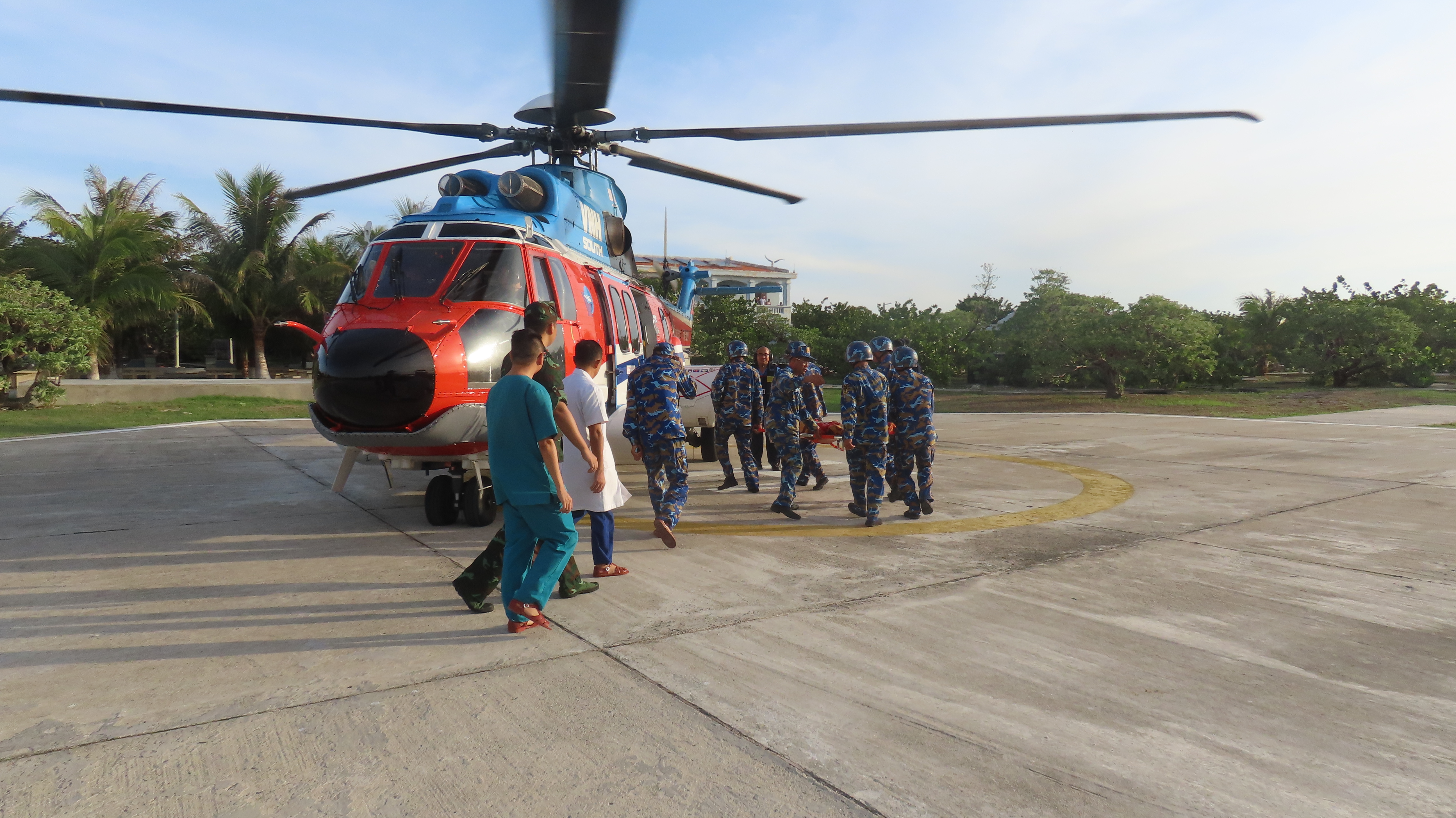 Cán bộ, chiến sĩ đảo Song Tử Tây đưa bệnh nhân lên máy bay vào bờ điều trị