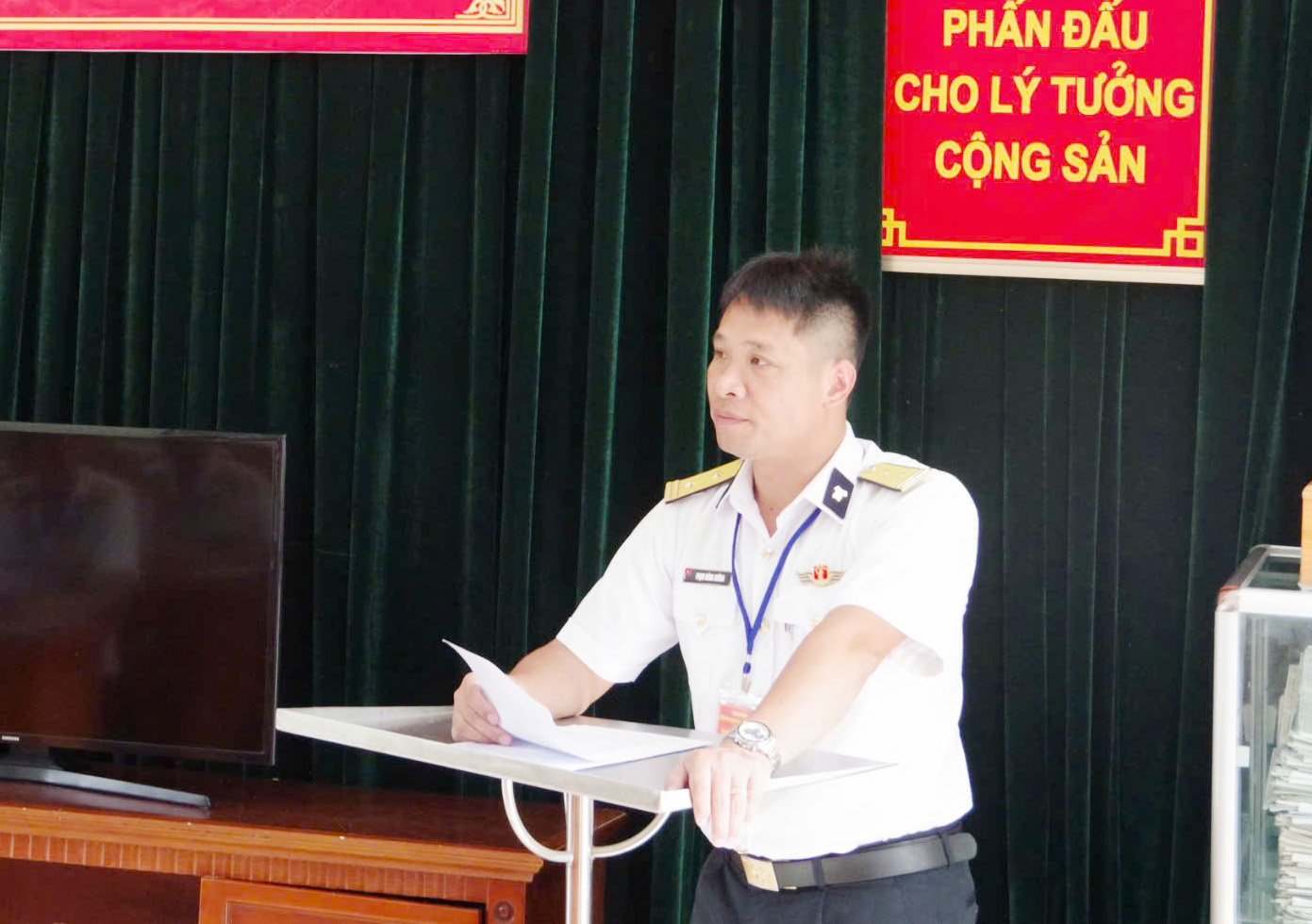 Trung tá Phạm Đăng Cường phát biểu