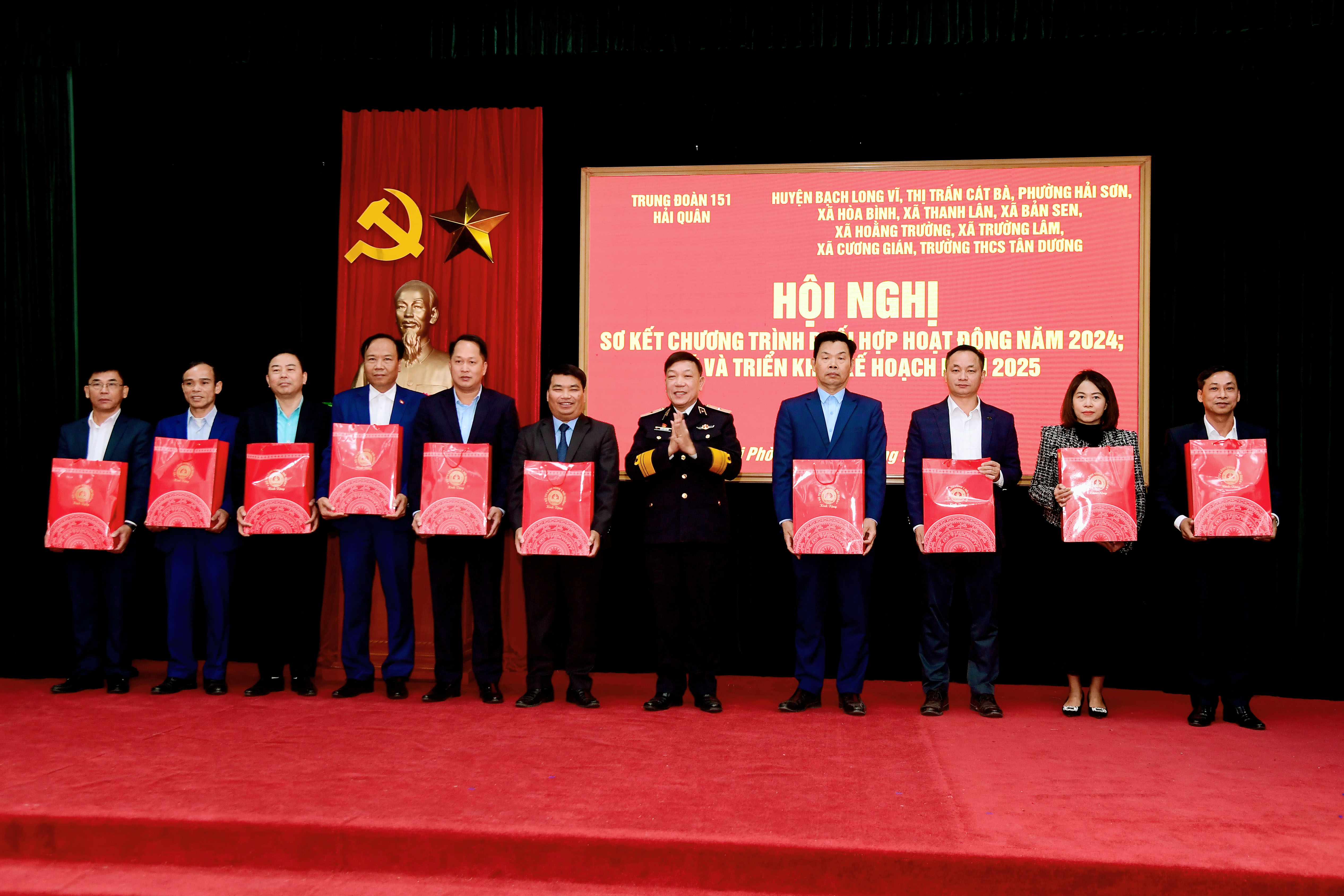 Chiều 21/12, tại thành phố Hải Phòng, Trung đoàn 151, Vùng 1 Hải quân tổ chức Hội nghị sơ kết chương trình phối hợp hoạt động năm 2024; ký, triển khai kế hoạch hoạt động năm 2025 và gặp mặt kỷ niệm 80 năm Ngày thành lập QĐND Việt Nam, 35 năm Ngày hội quốc phòng toàn dân. Chuẩn Đô đốc Trần Xuân Văn, Bí thư Đảng ủy, Chính ủy Vùng 1 Hải quân dự và chỉ đạo.
