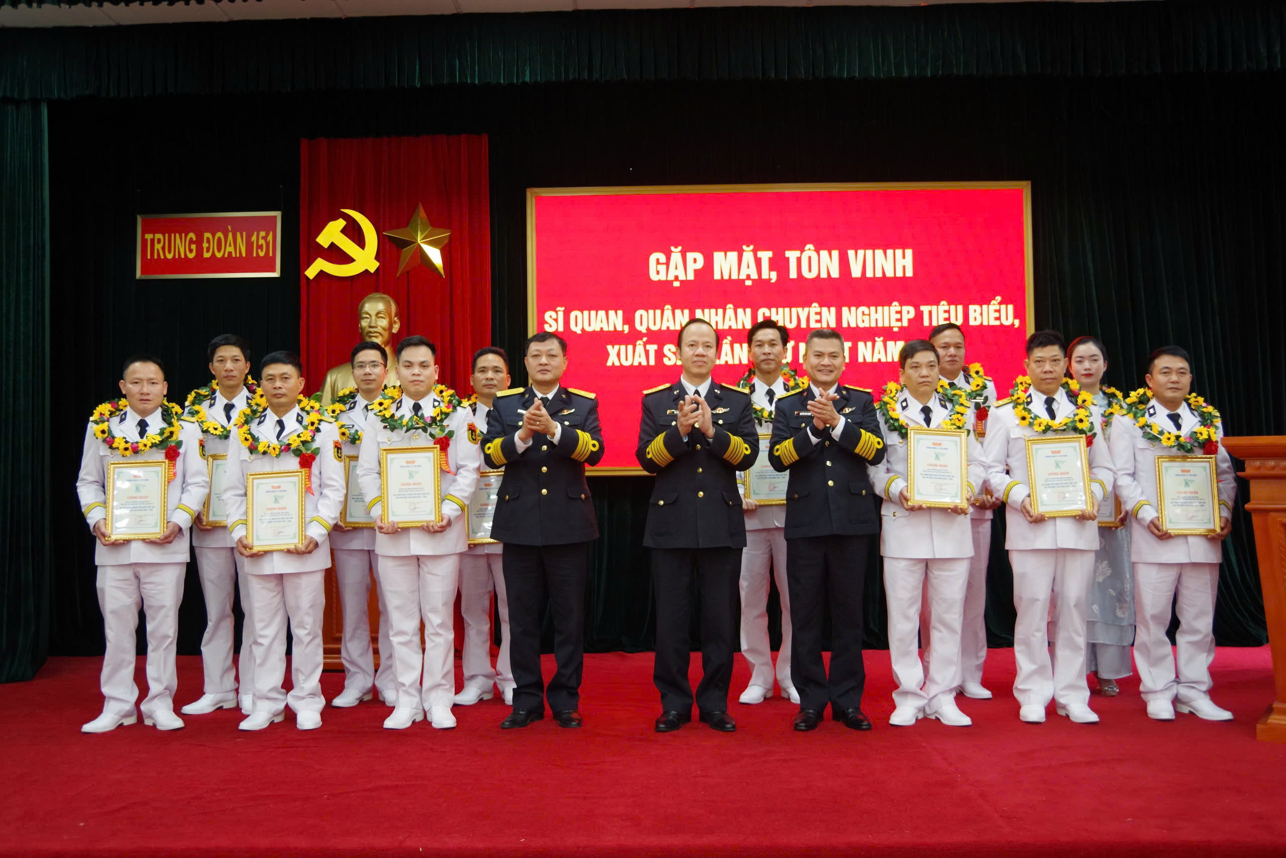 Đợt này, Trung đoàn 151 tôn vinh 3 đồng chí SQ và 11 đồng chí QNCN tiêu biểu xuất sắc. Đây là những tấm gương tiêu biểu, có nhiều thành tích, cống hiến trong giai đoạn 2022-2025 của đơn vị.