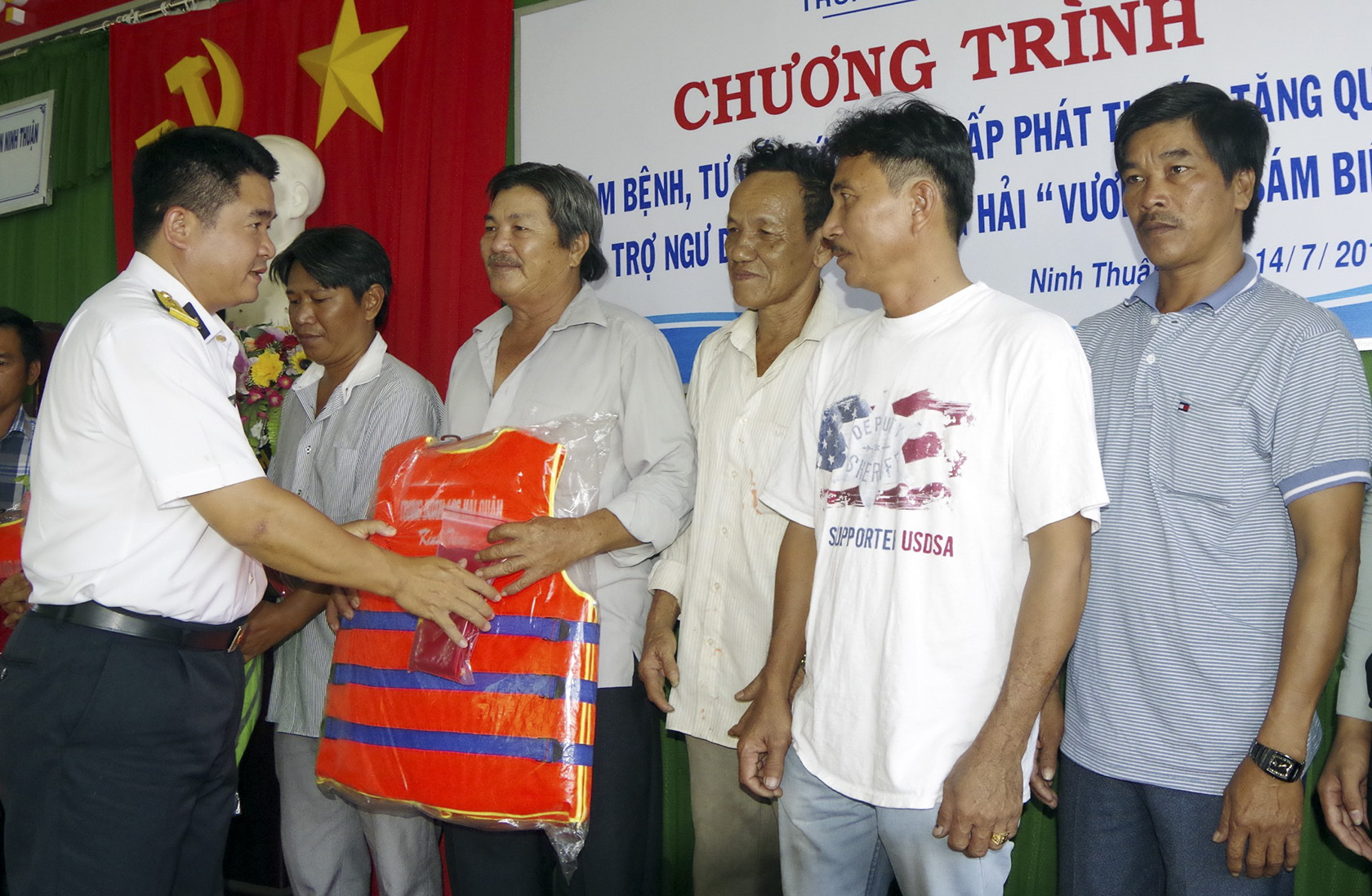 Ngày 14-7, tại phường Đông Hải, TP. Phan Rang-Tháp Chàm, tỉnh Ninh Thuận, Trung đoàn 196 Hải quân phối với Chi cục Thủy sản tỉnh Ninh Thuận tổ Chương trình khám bệnh, tư vấn sức khỏe, cấp phát thuốc miễn phí, tặng quà hỗ trợ ngư dân phường Đông Hải vươn khơi, bám biển.