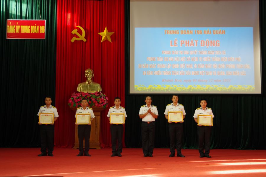 Dịp này, Đảng ủy, Hội đồng thi đua-khen thưởng Trung đoàn 196 tổng kết phong trào thi đua quyết thắng năm 2023, phát động phong trào thi đua quyết thắng năm 2024 và khen thưởng các tập thể, cá nhân có thành tích xuất sắc.