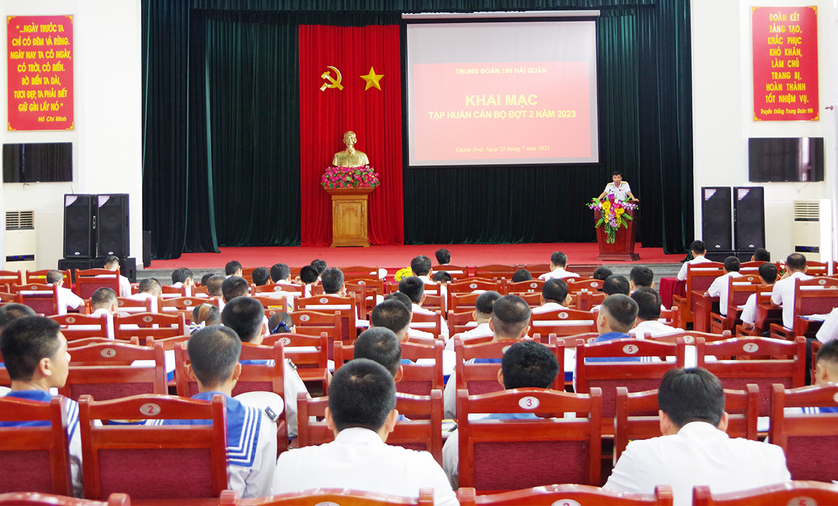 Sáng 25/7, tại TP. Cam Ranh, tỉnh Khánh Hòa, Trung đoàn 196 Hải quân tổ chức khai mạc tập huấn cán bộ đợt 2 năm 2023. Tham dự khai mạc có các đồng chí trong Đảng ủy, chỉ huy Trung đoàn và cán bộ, QNCN đảm nhiệm công tác huấn luyện.