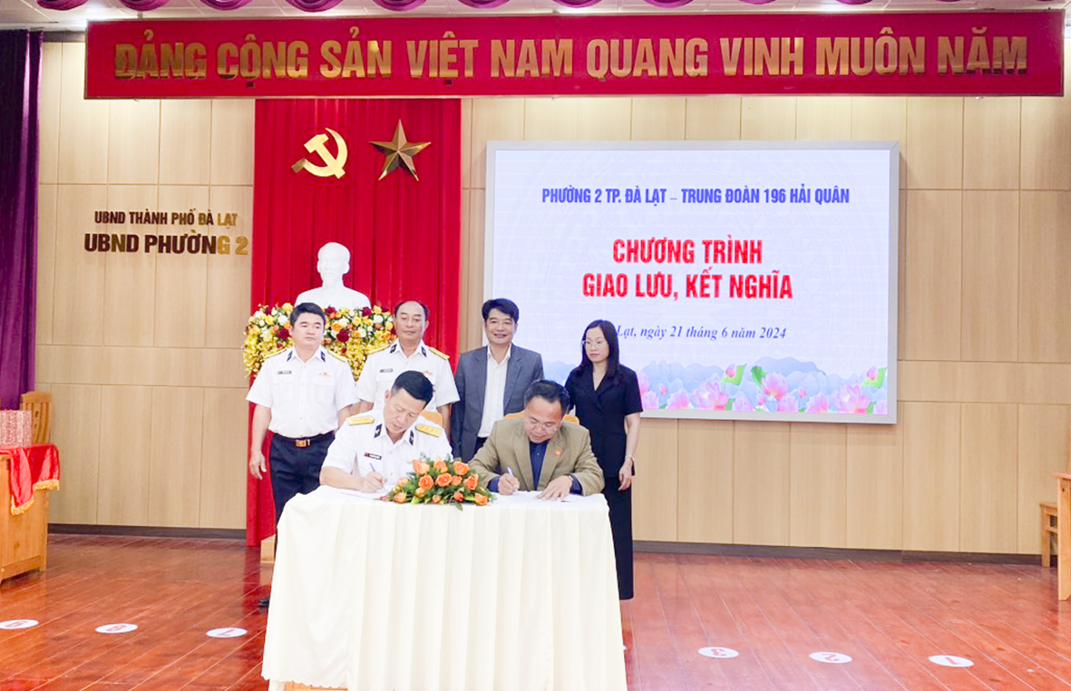 Ngày 21/6, tại TP. Đà Lạt, tỉnh Lâm Đồng đã diễn ra chương trình giao lưu, kết nghĩa giữa Trung đoàn 196 Hải quân và Phường 2, TP. Đà Lạt, tỉnh Lâm Đồng.