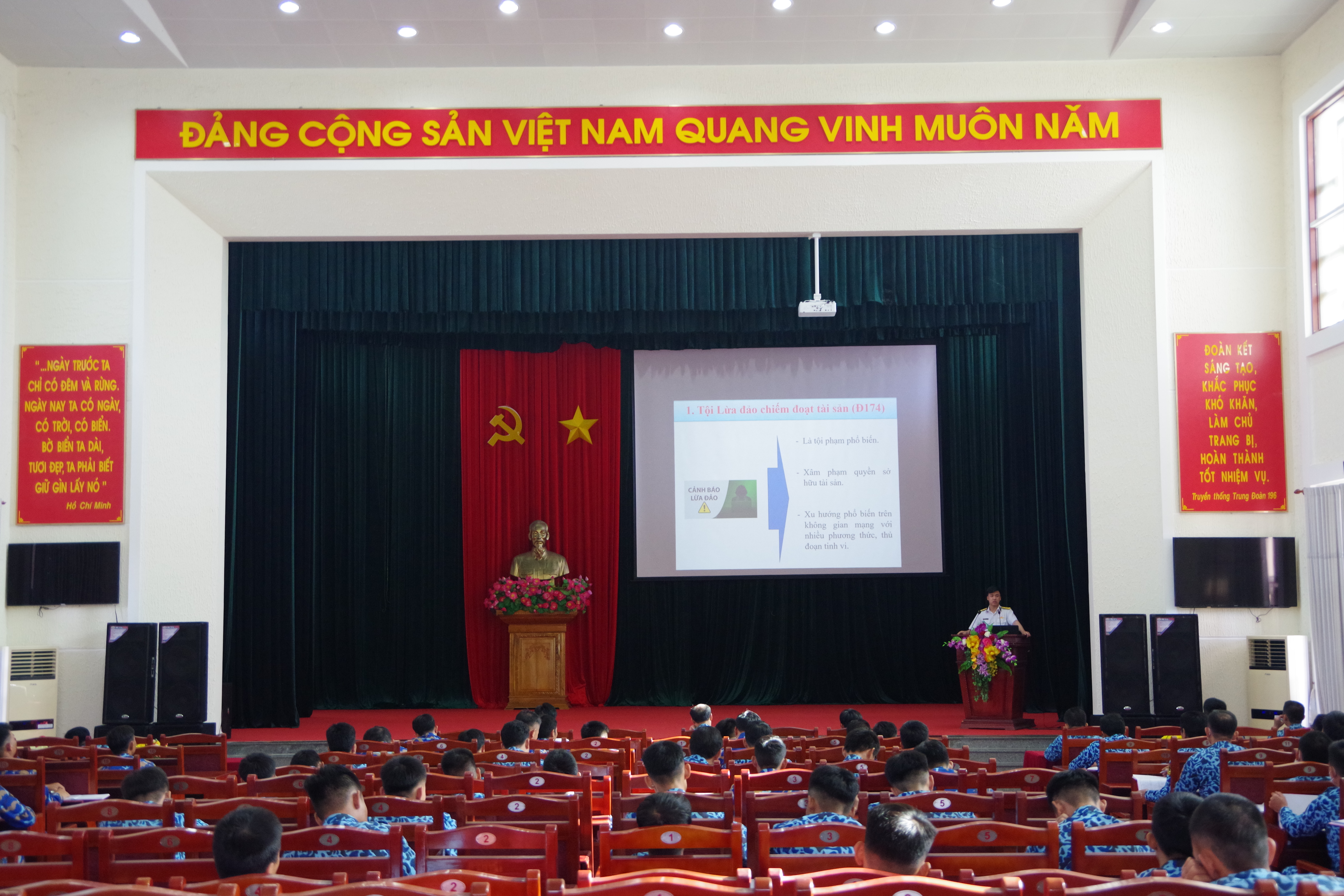 Ngày 5/5, tại TP. Cam Ranh, tỉnh Khánh Hòa, Trung đoàn 196 phối hợp với Tòa án Quân sự khu vực Quân chủng Hải quân tổ chức tuyên truyền, phổ biến, giáo dục pháp luật đợt 1 năm 2022 cho cán bộ, chiến sĩ.