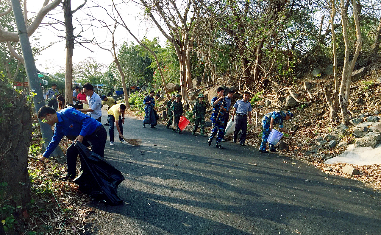 Trạm ra đa 585 cũng phối hợp cùng các ĐVTN của Trạm Thông tin SK14 (Quân khu 7), Chi đội Kiểm ngư số 2 (Bộ Nông nghiệp và Phát triển nông thôn), Xí nghiệp xây lắp khảo sát và sửa chữa các công trình khai thác dầu khí Vietxo và Công ty Cảng dịch vụ dầu khí PTSC tổ chức dọn vệ sinh, thu gom rác thải tại đường Viba.