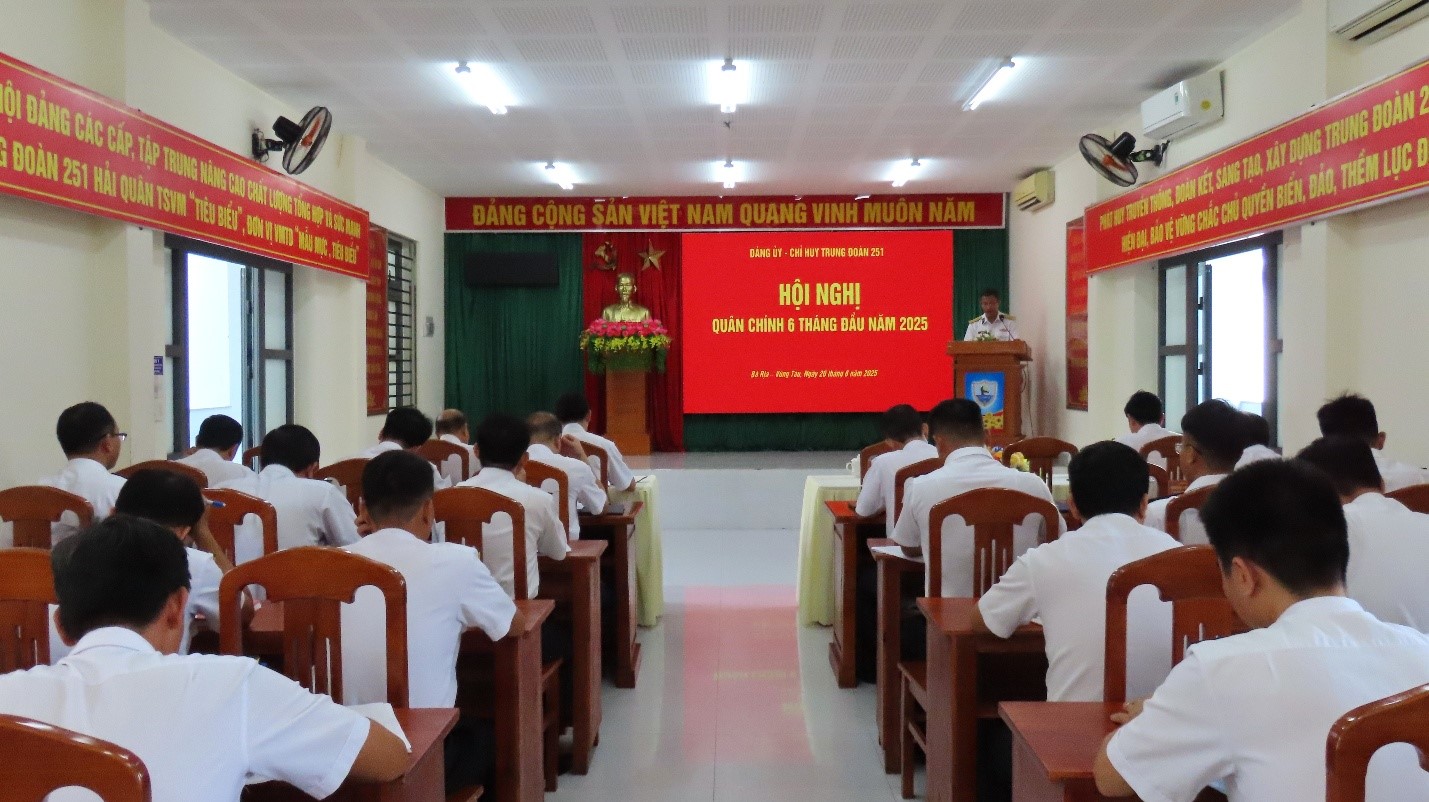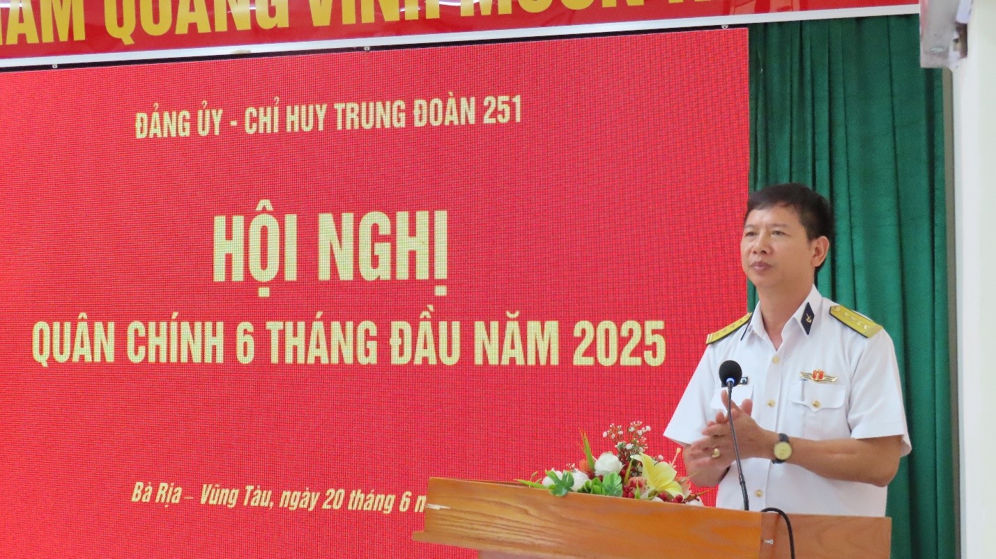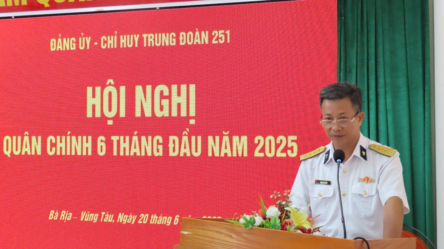 Sáng 20/6, tại TP Vũng Tàu, tỉnh Bà Rịa-Vũng Tàu, Trung đoàn 251, Vùng 2 Hải quân tổ chức Hội nghị quân chính 6 tháng đầu năm 2025.