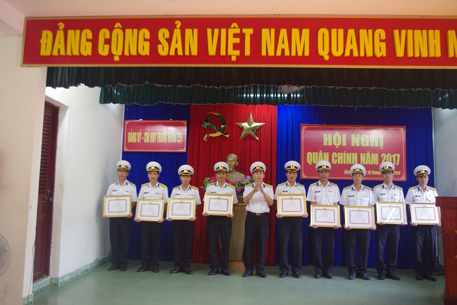 Lãnh đạo Trung đoàn trao thưởng cho các tập thể và cá nhân đạt thành tích tốt năm 2017