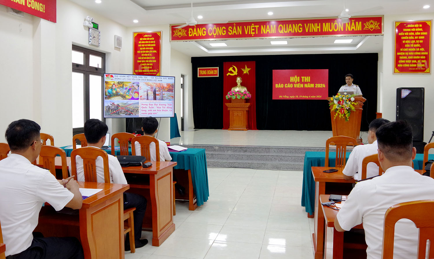 Ngày 18/6, tại Đà Nẵng, Trung đoàn 351, Vùng 3 Hải quân tổ chức Hội thi Báo cáo viên năm 2024. 100% cán bộ chính trị, bí thư, phó bí thư chi bộ các cơ quan, đơn vị thuộc Trung đoàn tham gia.