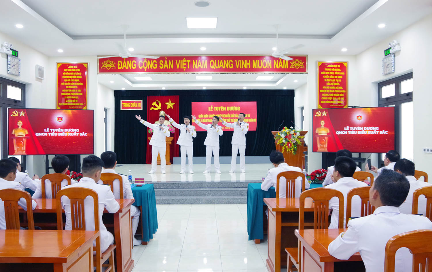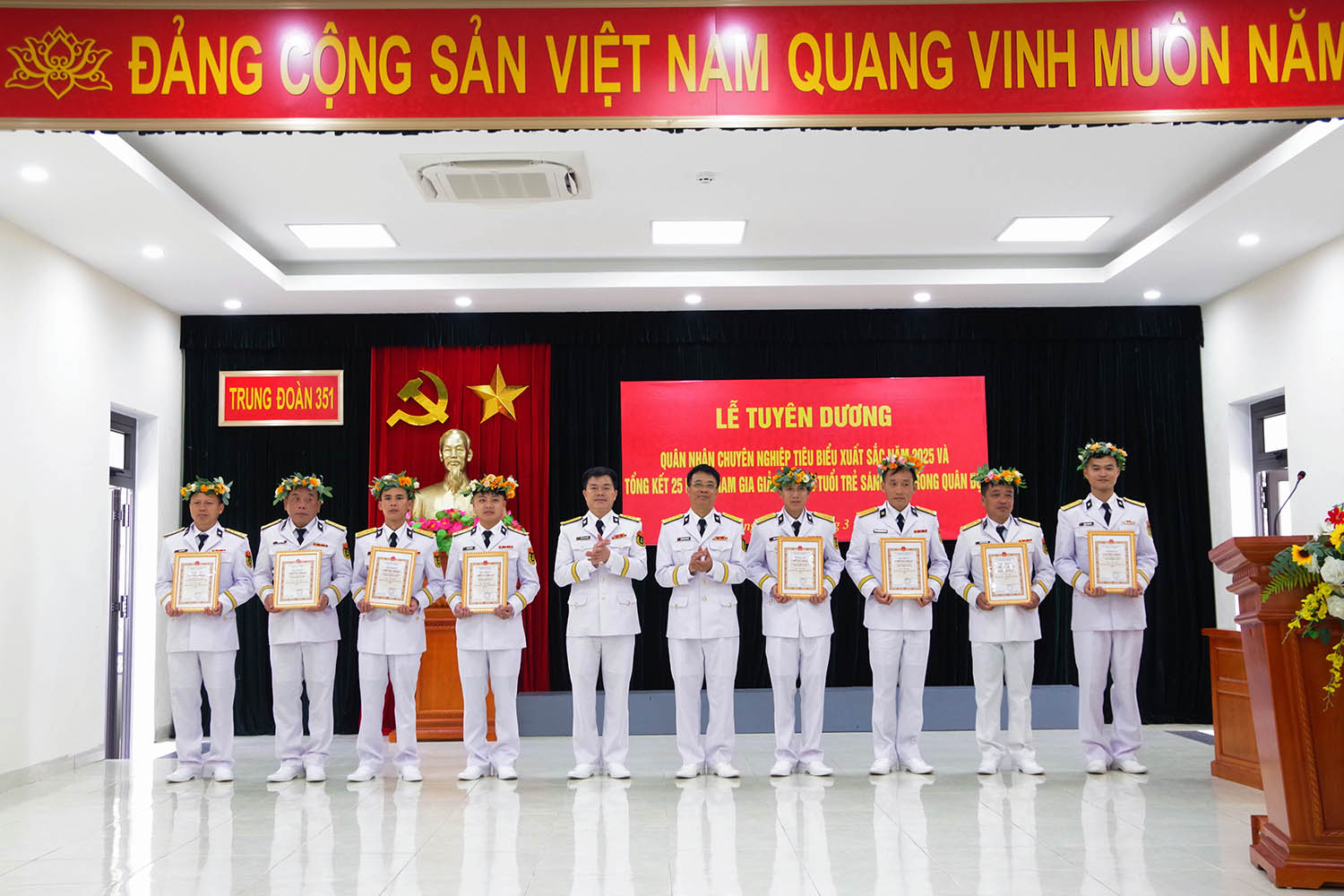 Tại buổi lễ, thủ trưởng Trung đoàn 351 đã tặng danh hiệu QNCN tiêu biểu cho 10 đồng chí; tặng Giấy khen cho 4 quân nhân có thành tích xuất sắc trong tham gia Giải thưởng Nguyễn Phan Vinh và Giải thưởng Tuổi trẻ sáng tạo trong Quân đội.