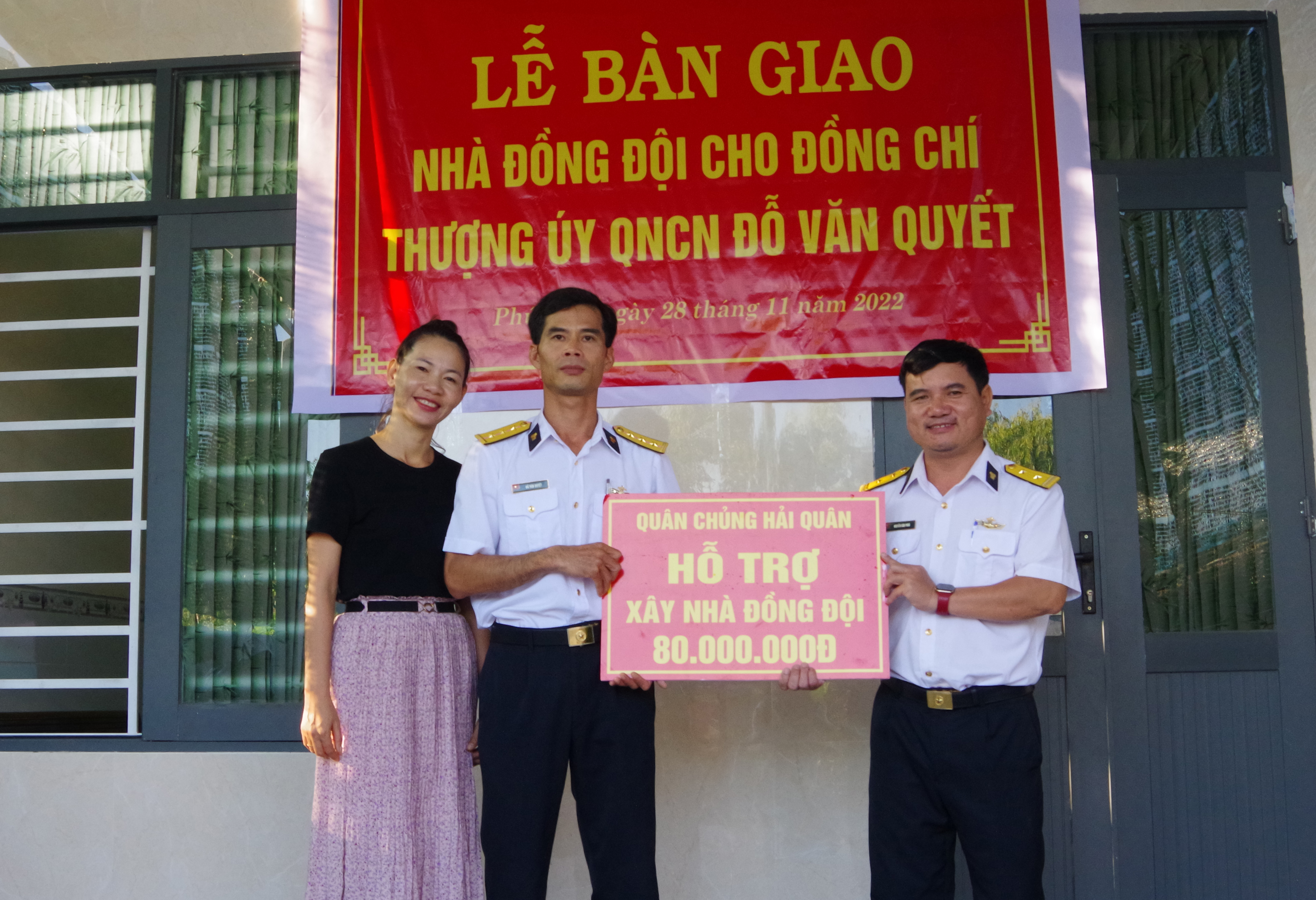 Chiều 28/11, tại phường Hoà Hiệp Nam, thị xã Đông Hòa, tỉnh Phú Yên, Trung đoàn 451, Vùng 4 Hải quân phối hợp với chính quyền địa phương tổ chức Lễ bàn giao nhà đồng đội tặng gia đình Thượng uý QNCN Đỗ Văn Quyết, Nhân viên ra đa, Trạm 560, Trung đoàn 451.