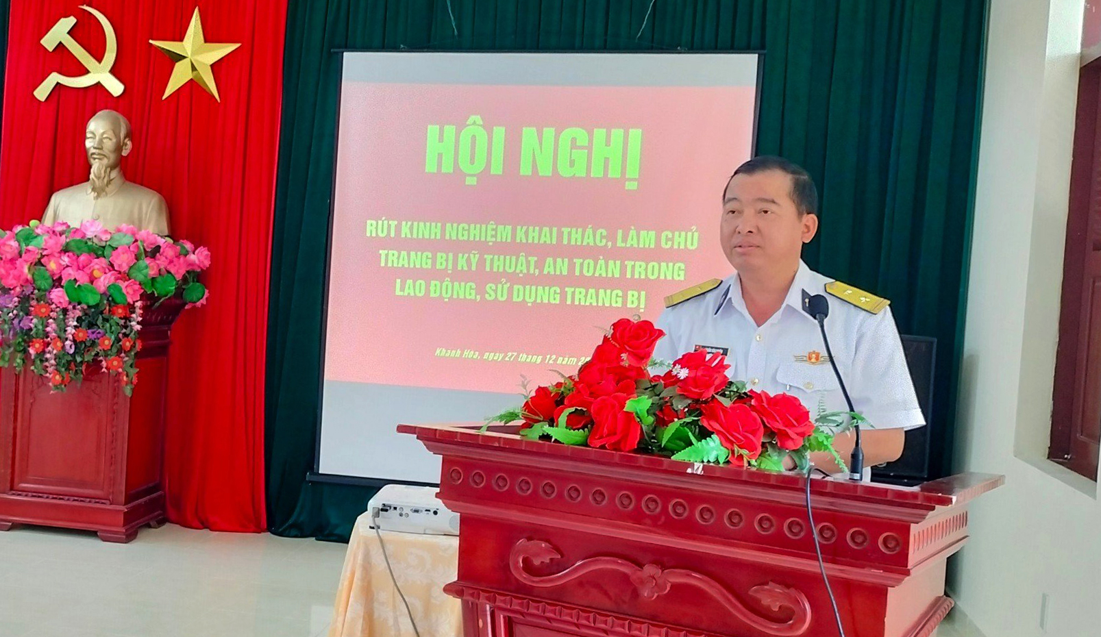 Chiều 27/12, tại TP. Cam Ranh, tỉnh Khánh Hòa, Trung đoàn 451, Vùng 4 Hải quân tổ chức Hội nghị rút kinh nghiệm khai thác, làm chủ TBKT, an toàn trong lao động, sử dụng trang bị Quý IV năm 2023. Trung tá Trần Văn Chiến, Phó Trung đoàn trưởng chủ trì.