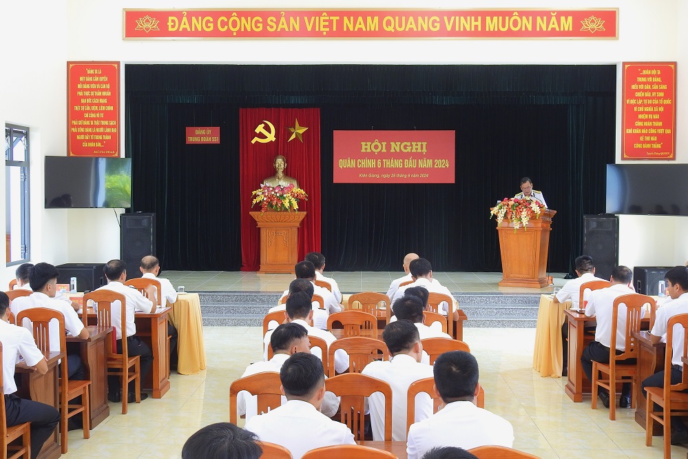Chiều 25/6, tại TP. Phú Quốc, tỉnh Kiên Giang, Trung đoàn 551, Bộ Tư lệnh Vùng 5 Hải quân tổ chức Hội nghị Quân chính 6 tháng đầu năm 2024. Đại tá Lục Đức Tiên, Phó Tư lệnh Vùng dự và chỉ đạo.