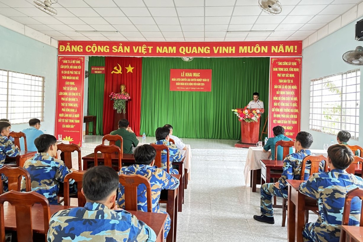 Chiều 1/6, tại huyện An Minh, tỉnh Kiên Giang, Trung đoàn 551, Bộ Tư lệnh Vùng 5 Hải quân tổ chức khai mạc huấn luyện chuyển loại chuyên nghiệp quân sự quân nhân dự bị động viên năm 2024.