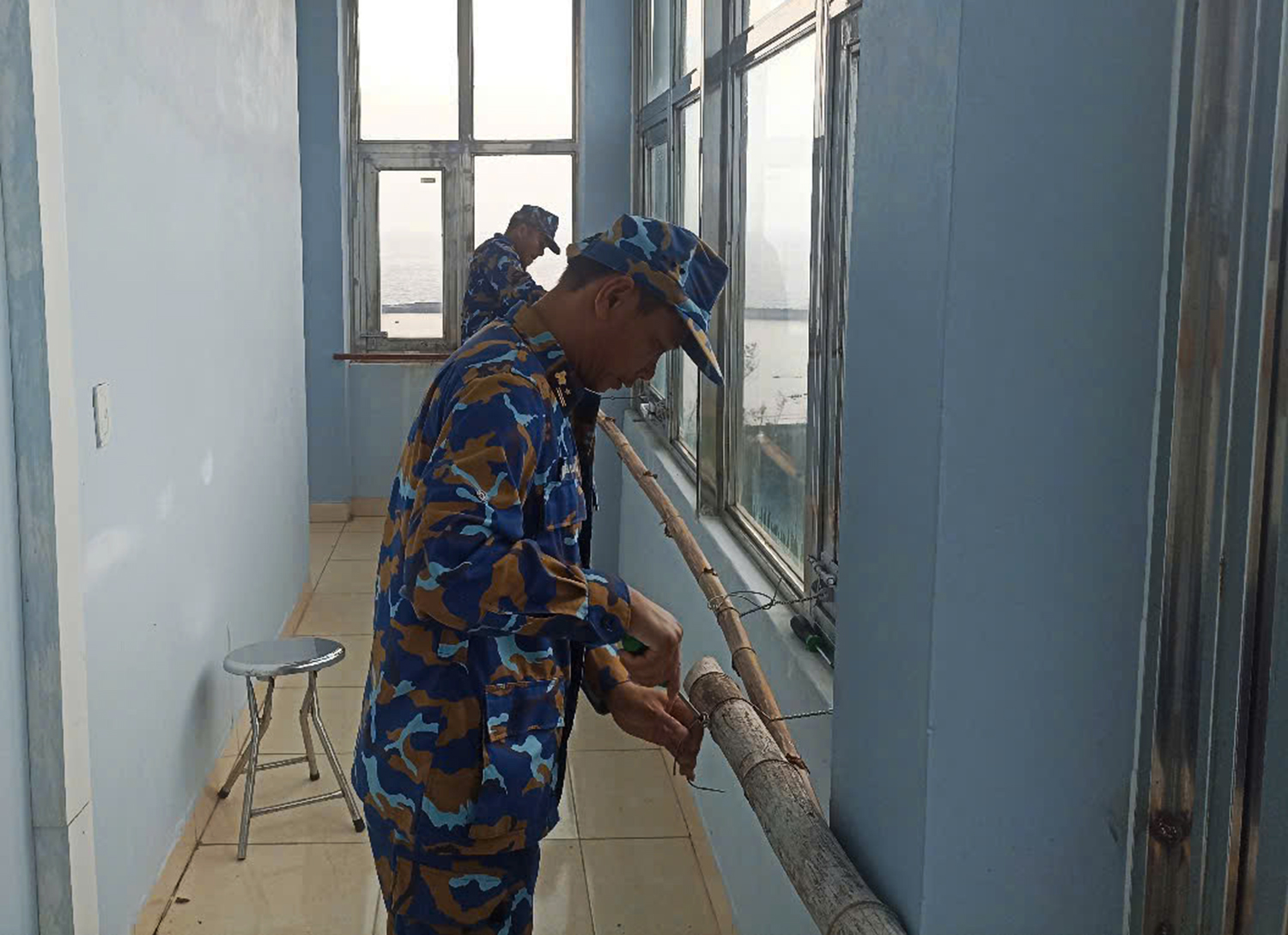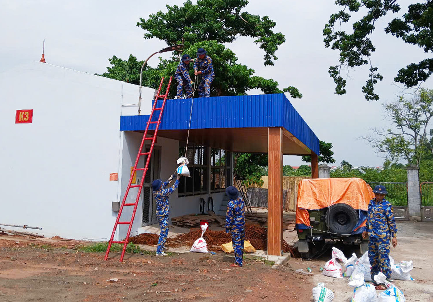 Cán bộ, chiến sĩ đã kê, kích, che phủ các máy móc, vật tư, trang thiết bị kỹ thuật; tháo, gỡ các biển bảng và sẵn sàng phương án tháo ăng ten ra đa khi có lệnh.